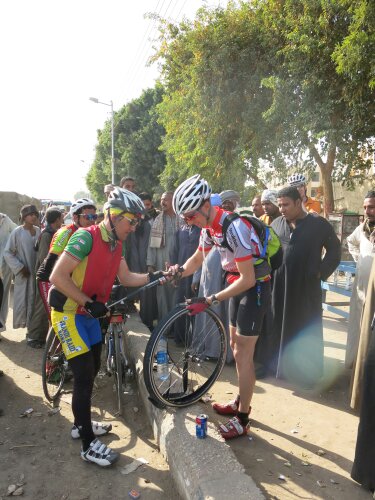 Gisteren de 19e een goede dag gehad, na 4km een stuk offroad waarop ik heerlijk met Volker even gas kon geven. Volker is 70 en geniet met volle teugen en gaat er voor. Daarna samen met 3 anderen in een groepje van 4 door gefietst en een goede en snelle tijd neergezet voor de etappe. Mooie route langs de Nijl gefietst met leuke dorpjes en vooral veel mooie mensen. Helaas wel wat kleine incidentjes gehad. 1 camera is gestolen onderweg…. de camera van Sylvie, not happy, daardoor erg voorzichtig met het maken van fotoos onderweg. Verder bekogeld met stenen (niet groter dan een tennisbal) maar het vervelendste was bespuugd worden door een jochie van een jaar of10…. buiten dit en wat slagen van suikerriet zijn de mensen echt super vriendelijk en is het jammer dat egypte er alweer op zit. Ik begon de Nijl echt te waarderen.