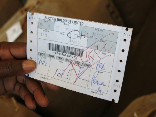 Eigenlijk zijn er 2 processen, de boeren die werken voor 1 bedrijf ( er zijn 5 partijen koper op de hele veiling)en een fixedprijs kijgen en de boeren die baal voor baal laten veilen, maar voor variabele prijzen.Dat veilen gebeurt in 3 seconden per baal en met op het hoogtepunt meer dan 12.000 balen per dag. Ondanks de automatisering die je ook hier ziet is het een kwestie van het baal voor baal langs lopen met de veilingmeester(es) en alle gegadigden en het bieden kan beginnen.